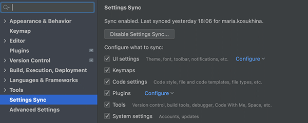 新的Settings Sync(设置同步)插件现在可用于所有基于 IntelliJ 的 IDE(Rider 除外),包括免费版和付费版。新的解决方案能够同步来自平台、捆绑插件和一些第三方插件的大部分可共享设置。请注意,我们将停止支持旧的IDE Settings Sync(IDE 设置同步)插件并取消捆绑Settings Repository(设置仓库)。
