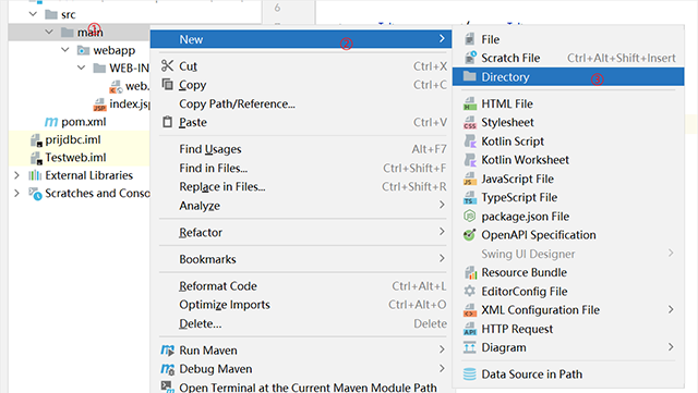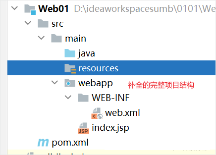 8、补齐Maven Web项目缺失的目录结构,默认没有java和resources目录