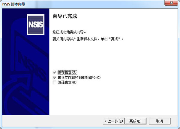 完成向导,勾选”保存脚本“,以及”转换文件路径到相对路径“,完成