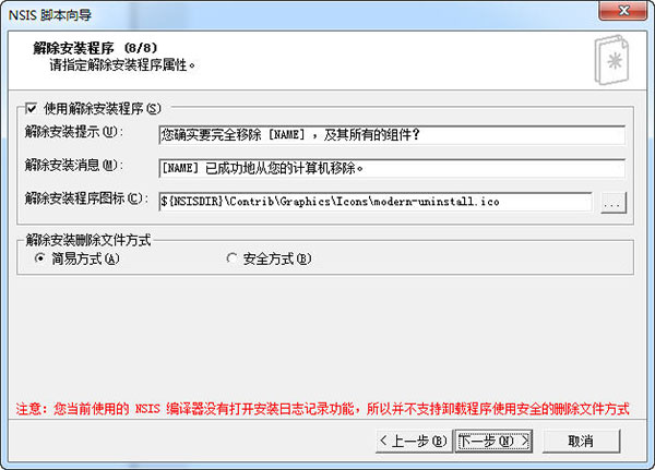 第八步,卸载信息设置,下一步