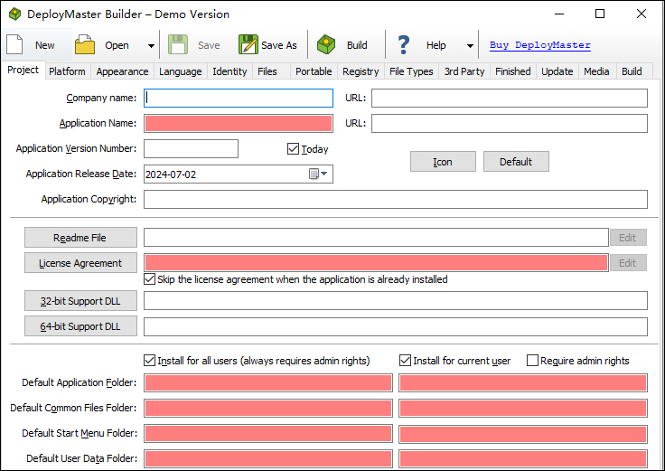 值得一提的是,通过DeployMaster您可以使用单一设置来定位所有这些平台,也可以针对不同版本的Windows和/或不同位数创建单独的设置。不仅如此,它还支持简单直接的GUI界面,不需要学习另一种脚本语言即可操作,您可以从命令行调用构建器,也可以从自动构建或制作工具调用构建器,有需要的朋友可以来多多软件站下载使用哦~