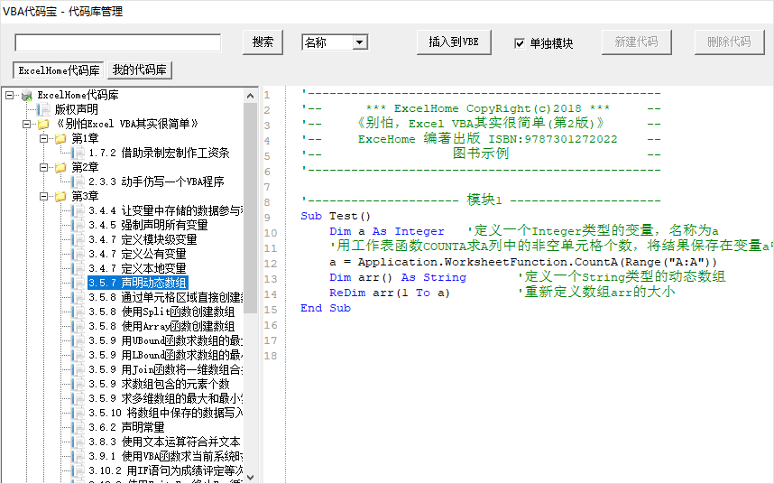 1、ExcelHome代码库:包括ExcelHome论坛出品的经典图书《别怕,VBA其实很简单》中的大量实用代码,以期帮助大家在工作学习中快速的实现相关功能。