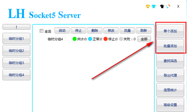 5、在软件的右侧根据个人的使用情况选择添加单个服务器或者批量服务器。