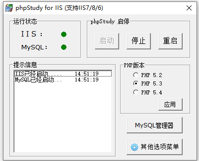 phpstudy for iis版使用安装说明