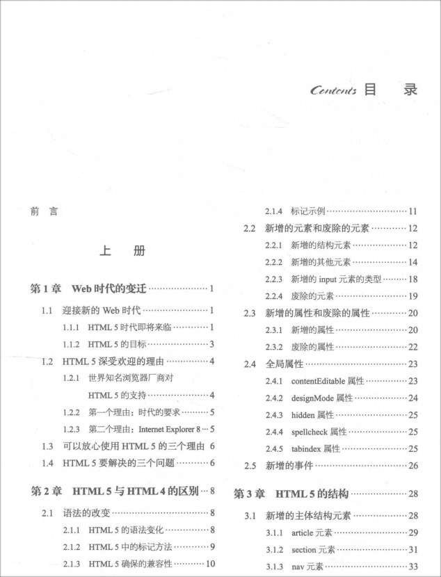 html5与css3权威指南第三版共29章,分为上下两册:上册(1~17章)全面系统地讲解了HTML 5相关的技术,以HTML 5对现有Web应用产生的变革开篇,顺序讲解了HTML 5与HTML 4的区别、HTML 5的结构、表单及新增页面元素、图形绘制、多媒体、本地存储、文件、WebRTC通信、扩展的XML HttpRequest、离线应用、Web Workers、地理位置信息、拖放与通知等内容;