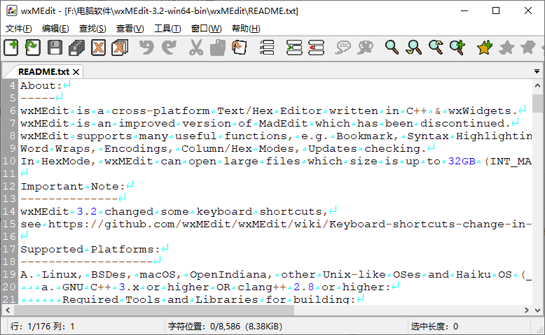 1、wxMEdit 支持 MS-Windows、Linux、FreeBSD、Mac OS X 平台。
