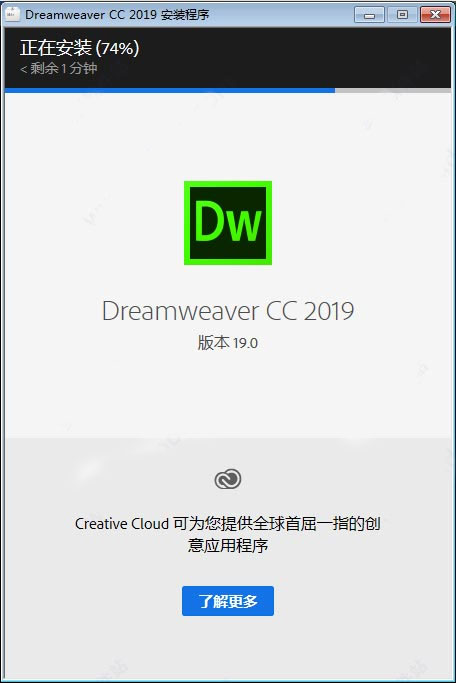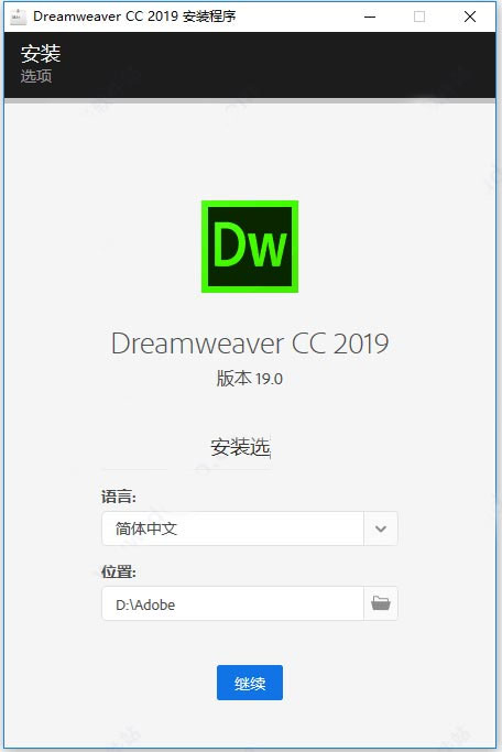 2、下载解压,得到dreamweaver 2019中文直装版,集成破解补丁,安装即可正常使用;