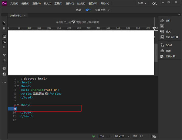 3、建立好一个网页文档后就可以看到网页默认的代码了,我们编辑网页是需要在【body】中来编辑完成的;