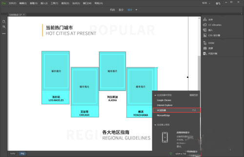 9、画好后我们点击其中一个热区,在属性栏【目标】中输入跳转的链接。都添加好链接后,点击【在浏览器中预览】,快捷是F12;