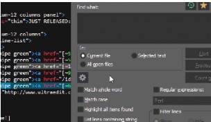如果可以搜索,UltraEdit会找到它。但搜索几乎是错误的。有了使用正则表达式搜索的能力,搜索文件,在4GB大海捞针中找到针,或者只是快速找到您正在寻找的单词,这不是搜索。这是无所不知的。