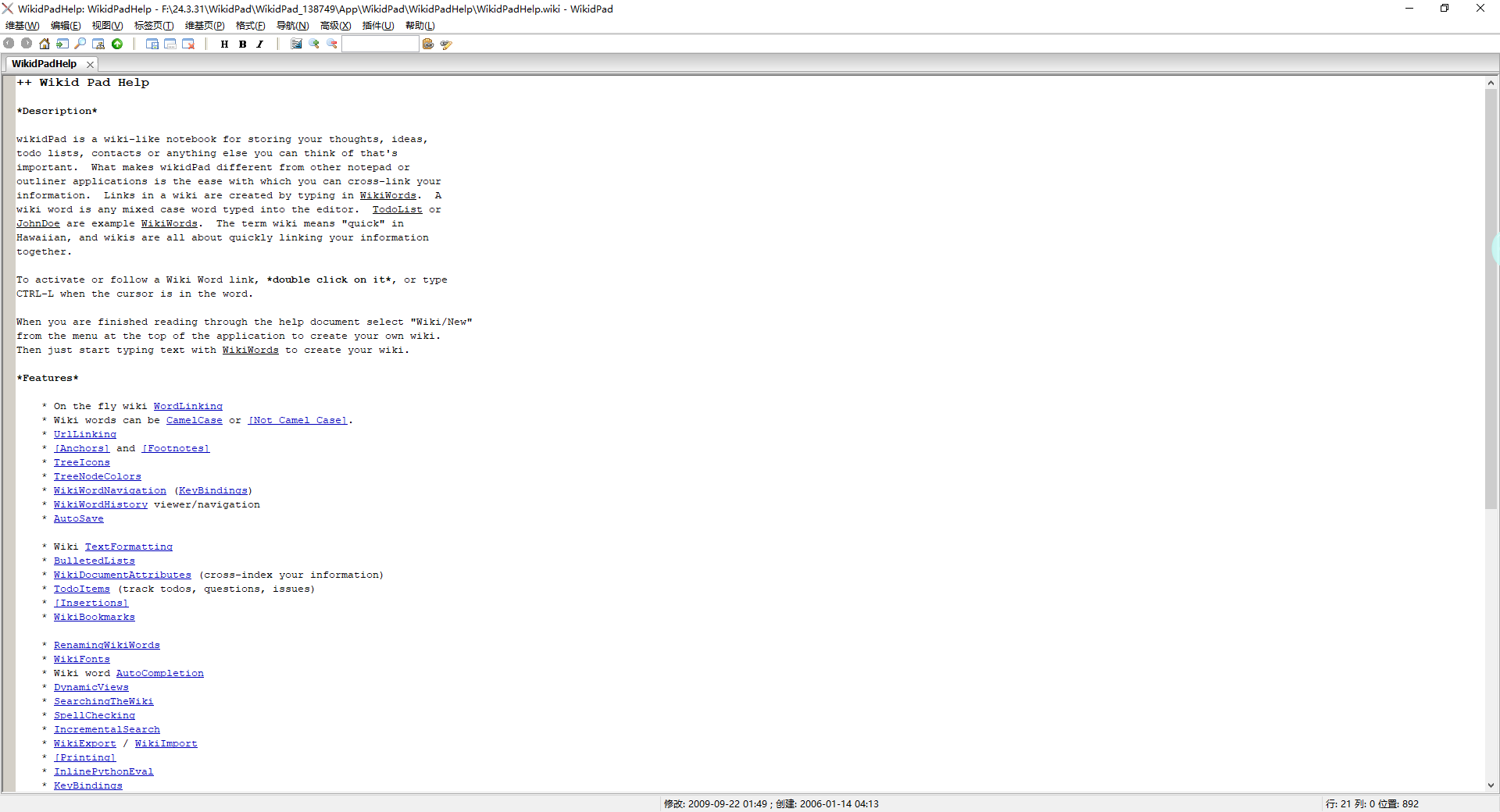 11、采用多种数据库格式,WikidPad最新版包括纯文本格式,方便别的程序进行编辑