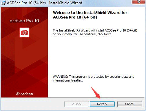 2、这里以64位为例,双击“acdsee-pro-10-64bit.exe”文件,进行安装;