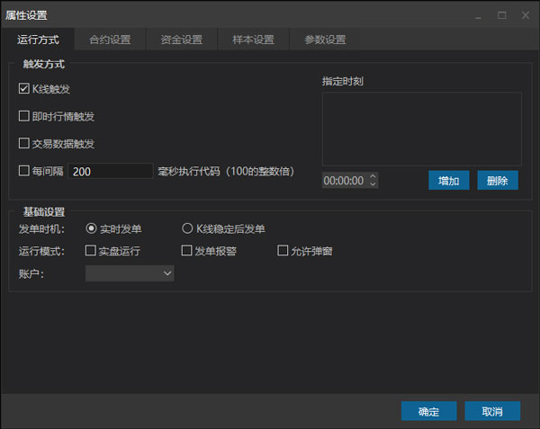 这里有个坑记录下:如果你在代码里设置了触发方式,这个窗口也勾选了触发方式,那么实际运行时是两个触发都会有的!也就是不是以哪个设置优先,而是两个设置都生效。同理与合约订阅。这可能就会导致一些莫名的问题,大家要注意一下。
