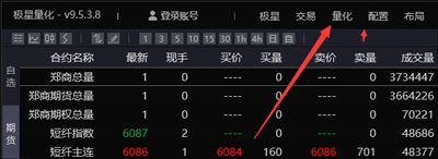 双击极智量化1.1.0图标后,首先启动的是极星9.5,点击上方的“量化”按钮启动量化窗口。