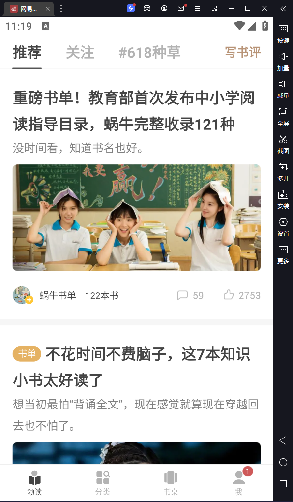 网易蜗牛读书电脑版是网易打造的一款借助于模拟器运行的阅读软件,它为阅读者提供海量优质的图书,每天可以享受免费读书一小时特别福利,更有专业领读人入驻荐书,精品书评、优质书单伴你共读。并且你可以随时记录自己读书笔记,该软件设计也非常精简,操作起来简单。