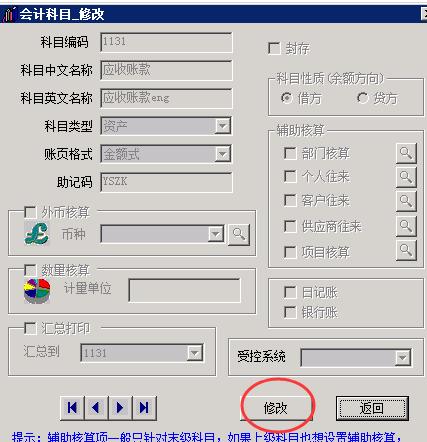 会计科目里面的应收账款、其他应收款、应付账款、其他应付款等等这些往来有关的一级科目,可以跟第二步的设置一样,直接设置二级科目,二级科目为具体往来单位的名称。也可以做辅助核算,现在我来说一下做辅助核算的设置。