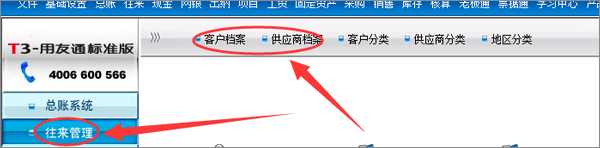 详细的客户名称和供应商名称在“客户档案”和“供应商档案”里面录入,如下图:
