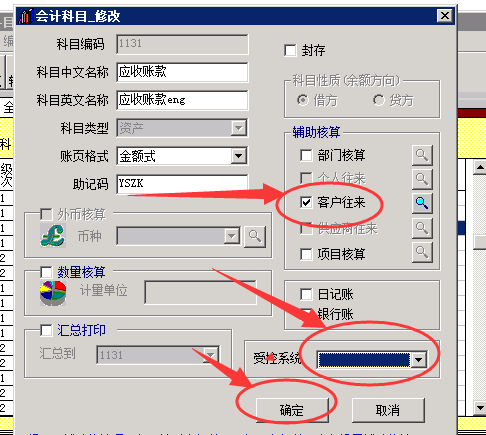 如上图,客户往来勾选、受控系统选择空白,然后点击确定,就这样成功了,当然如果这里勾选了,就不需要在增加二级科目了,如果有了二级科目明细,这里也不需要勾选,两者选其一。