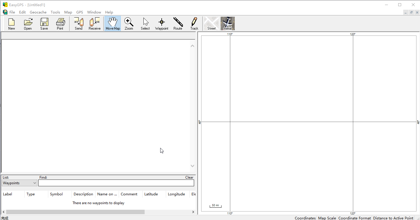 5、EasyGPS列出了屏幕左侧的所有航点,并在右侧显示了您的GPS数据图