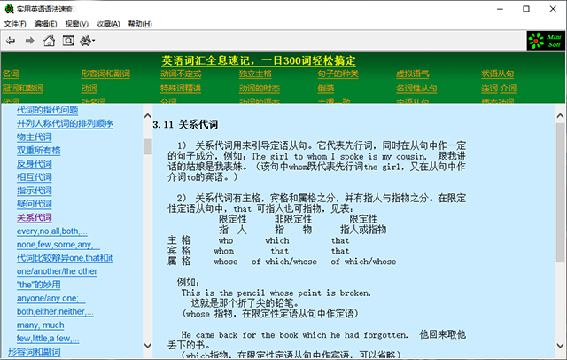 实用英语语法速查软件是一款简单易用的英语语法查询软件,这款软件功能十分的全面,深受广大用户的喜爱,而且还可以将自己不懂的语法主动的收藏到收藏夹中,并且你还可以自动的调节文字的大小,非常的方便,实用英语语法速查可内含了成千上万种基础的英语语法,并且你可以自定义的搜索与查找,除此之外,软件还会举出大量的例子来运用这个语法,让你对这个语法的记忆更加的深刻,还是一款安全、绿色、没有病毒的免费软件,喜爱学习的英语的朋友赶快来下载吧~