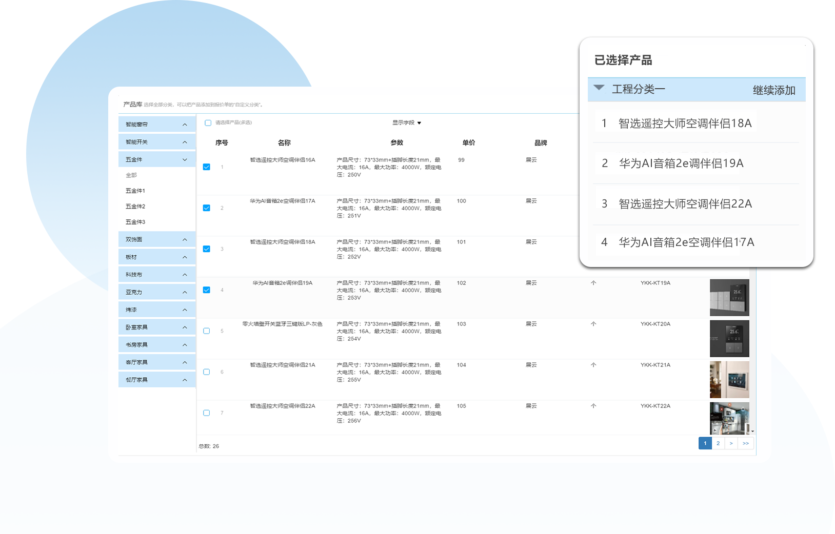 一键调用产品信息及图片,自动复制到报价表中,省去了反复录入的重复性工作,系统自动核价,避免计算失误和人工压力。