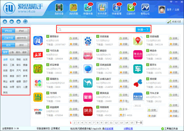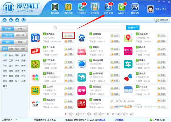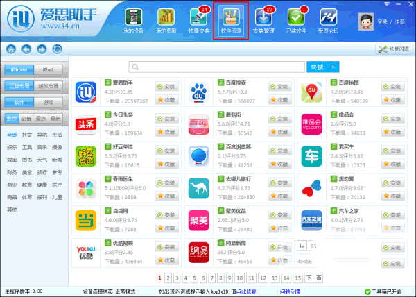 2、点击爱思助手上方“软件资源”,可查看海量应用。