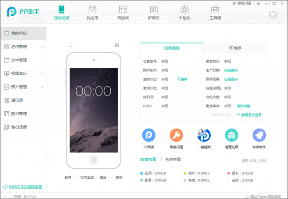 Q:iOS9.3.3设备在PP助手电脑版没有一键越狱按钮?