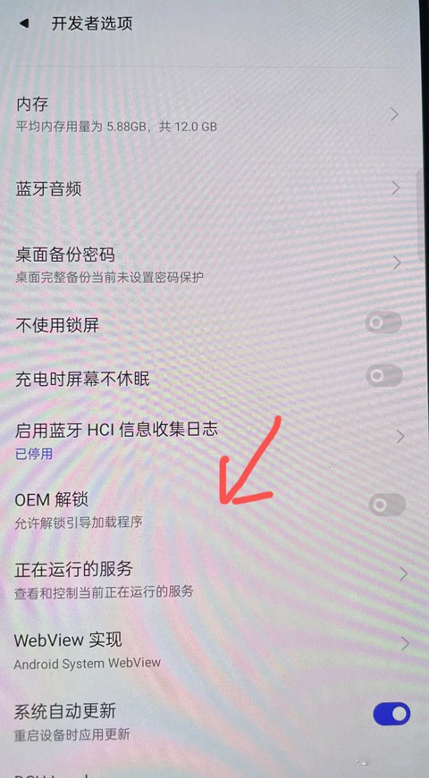 5、接着返回系统设置主页,依次打开系统设置/辅助功能-开发者选项,里面有个OEM解锁的选择,点击开启即可(在此期间可能会让你输出锁屏密码)!