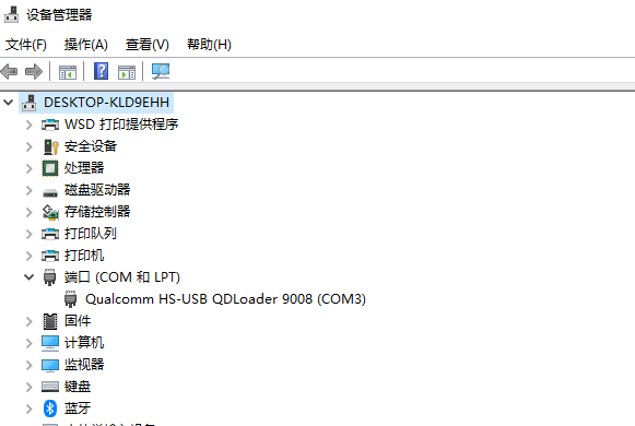 电脑设备管理器COM出现9008进入模式成功