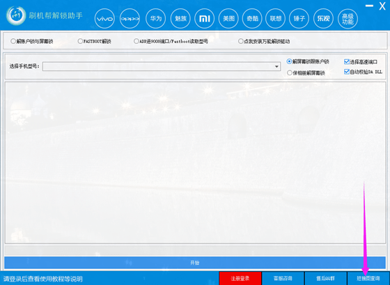 刷机帮维修助手是由刷机帮官方倾力打造的一款支持丰富,功能强大的多功能刷机工具。集解锁、救砖、刷机于一体,是一款全面的刷机帮综合维修工具箱,专为手机维修从业者贴身打造,主要解决维修工作中常见的解账户锁、解BL锁、屏幕锁、修复串号、刷机救砖等多个常见问题。虽然软件体积较大,但同样以其功能强大、快速、安全稳定的特点极大的方便了广大的手机维修同行,同时提高了同行们的维修作业效率,一经推出,便受到同行们的热烈欢迎与高度好评!