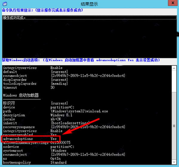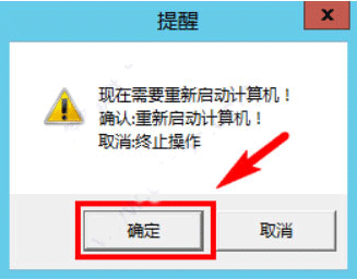 5、如上图显示“操作成功完成”,并第二列表框中显示 advancedoptions yes表示执行成功,关闭窗体后,弹出窗体如下图,点击“确定”重启计算机(这个步骤必须点确定重启才行否则极通无法完成正常安装)
