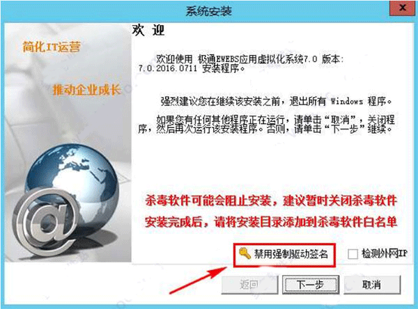 5、win8、win8.1、win2012 R2、win10系统安装需要禁用系统驱动强制签名,按程序安装引导即可完成。