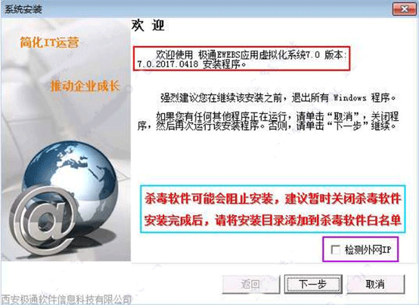 1、安装极通 EWEBS 软件之前,确保服务器上分配有固定的 IP 地址;