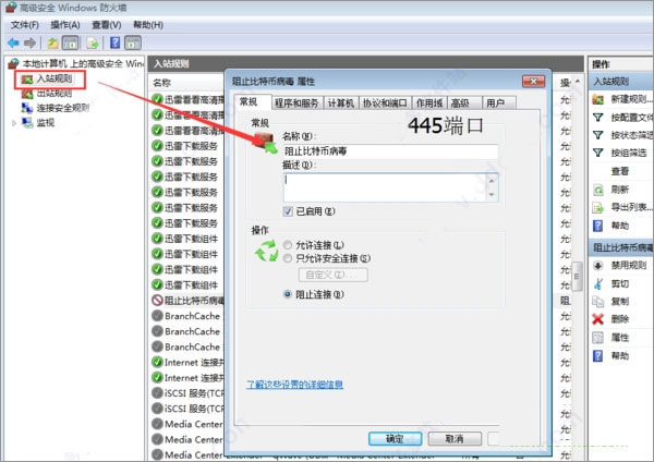 做完上面所有步骤后你会在入站规则的最上方看到两个新建的规则,这就表示完成了,保险起见,重启一下电脑即可。