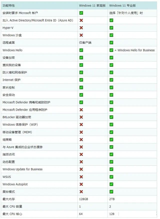 windows11专业版提供了更多高级功能和工具,适合企业用户和需要高级安全管理的用户,而家庭版更适合普通家庭用户和轻量级办公用户。其功能差异如下: