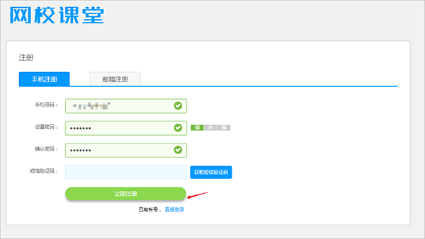 2、依次从上到下填写完信息之后,获取验证码,点击立即注册;