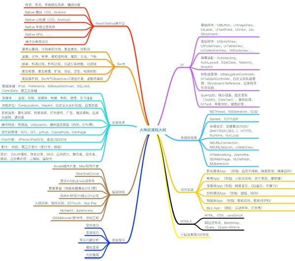 2、课程体系中“网络+多线程+地图+定位+推送+即时通讯课程”的设计正符合时下热门的SoLoMo(社交+本地化+移动)应用开发需求方向。