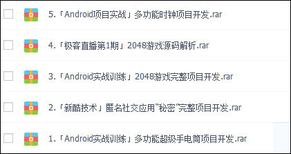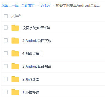 本套极客学院android视频是目前官方提供最新的全套安卓android视频教程,包括环境搭建、java基础、android基础知识、知识点精讲、android项目实战以及安卓源码,总共17G大小,全部存在百度网盘中,送给想要学习android开发的朋友免费下载收藏。