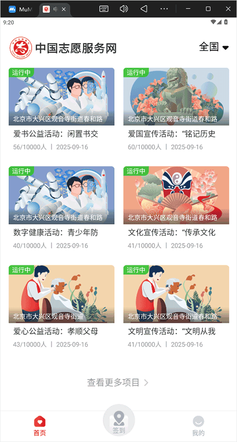 中国志愿app电脑版是一款借助模拟器运行的中国志愿服务网官方客户端,可以让用户们很方便安全地登录上去进行使用,其是基于安卓模拟器开发运行的。该客户端与全国志愿服务信息系统相连,实现各地志愿服务信息数据互通互联,用户们可以让用户们在上面免费注册成为志愿者,并且根据用户的地理位置信息或选择的城市地区就近就便的报名参与附近的志愿项目和志愿团体,实现自己的志愿者服务理想。同时软件还可以将用户的志愿服务时间记录上传到全国志愿服务系统中,以便以后能够将服务时间数据调取出来以备它用。另外如有志愿服务记录转移接续、志愿服务供需对接、志愿服务组织在线管理等需要的志愿者用户们也可以在上面轻松办理,有需要的用户可以在本站免费下载使用。