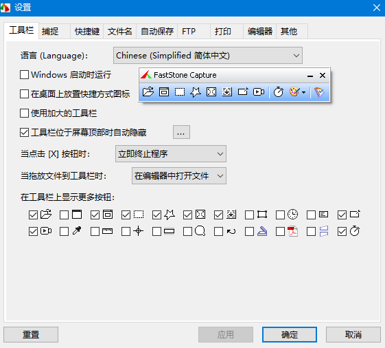 1、捕获设置:设置对话框的捕获选项卡提供了在Windows启动时启动FastStone的选项,自动最小化Windows系统托盘是最方便和最不干扰的。