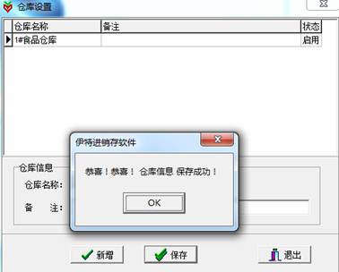 单击“新增”按钮,录入仓库信息后,单击“保存”按钮即可完成新增仓库操作。