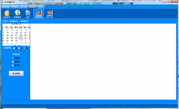 5、最后呢,就是支持对店铺的整体的查询,比如当前库存、单据查询、报表、经营图表、占比分析这五项的查询,支持按照时间、进销售单、进货单等一键查询。