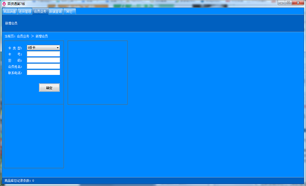 4、当遇到办店铺会员的人,你也可以设置卡类型、卡号、密码、会员名称、联系电话,点击确定就可以了;