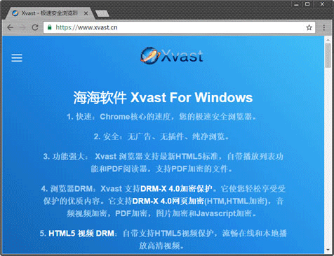 4、浏览器DRM:Xvast 支持DRM-X 4.0加密保护。它使您轻松享受受保护的优质内容。