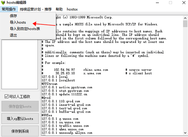 一、下载打开软件,点击常用操作,就可以导入对应的host。