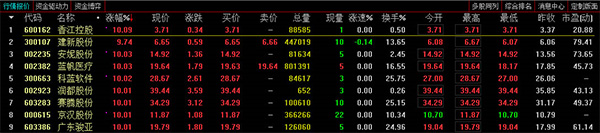【排序动态刷新】点击某个栏目名,例如『涨幅』,显示牌中所有股票马上按这一时刻涨幅从大到小的顺序排序,再点击『涨幅』一次,换成从小到大排序。可在排行榜中选中某只股票(点击股票名称即选中它)锁定,方便您密切观察该只股票的排名变化。状态栏刷新时间可在系统设置中修改。