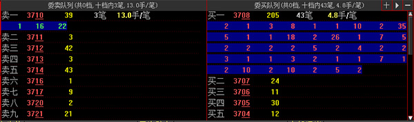 三角表示委托均价在10档价位之外;