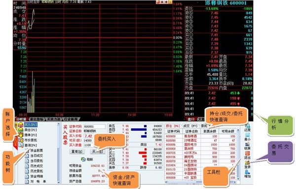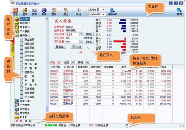 多账户切换:点击下单界面左方的帐户标签页可以切换帐户。详细请看“多资金帐户的使用”。