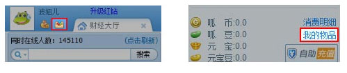 在客户端左上角,点击我的物品标识,可查看我的所有物品。或者房间右下角点击“我的物品”,即可查看所有物品。