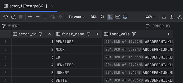DataGrip 有一个设置可以限制每个单元加载的数据量。 此设计旨在当表中数据过多时提高性能。